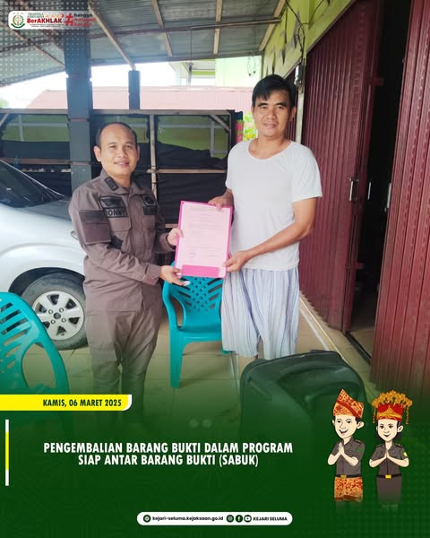 Seluma, Kejaksaan Negeri Seluma melaksanakan pengembalian barang bukti sebagai bagian dari pelaksanaan program Siap Antar Barang Bukti (SABUK) dalam perkara an. terdakwa CWP dkk sebagaimana putusan pengadilan Negeri Tais Nomor: 6/Pid.B/2025/ PN Tas tanggal 27 Februari 2025 berupa:– 1 (satu) Unit Printer Merek Epson L360;– 1 (satu) Unit Speaker Merek DAT;– 1 (satu) Buah Tabung […]