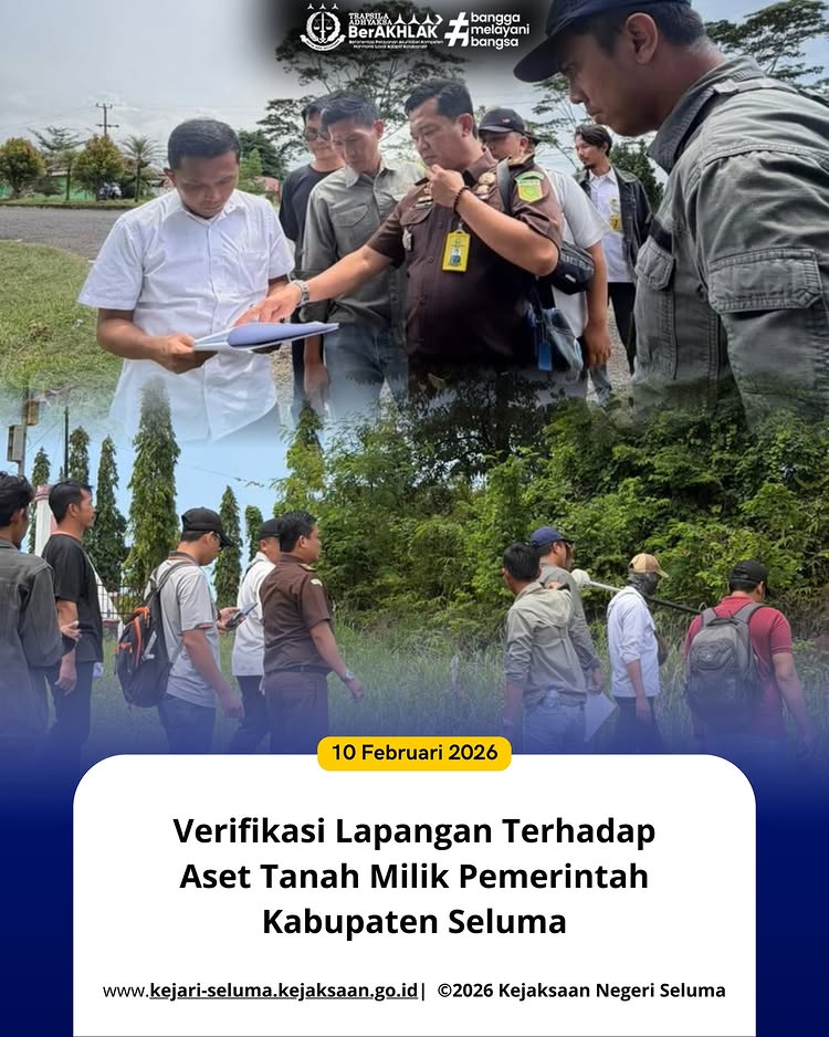 Seluma, Kejaksaan Negeri Seluma diwakili oleh Kepala Seksi Perdata dan Tata Usaha Negara M. Ridho Saputra, S.H., M.H., bersama Jaksa Pengacara Negara telah melaksanakan verifikasi lapangan terhadap aset tanah milik Pemerintah Kabupaten Seluma bersama Badan Pertanahan Kabupaten Seluma dan Dinas Perumahan dan Kawasan Permukiman Kabupaten Seluma, serta pihak yang diduga menguasai lahan dimaksud, guna memastikan […]