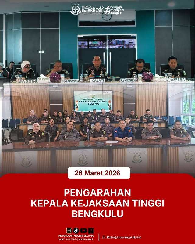 Seluma, Kejaksaan Negeri Seluma mengikuti kegiatan Zoom Meeting yang diselenggarakan dalam rangka pengarahan oleh Kepala Kejaksaan Tinggi Bengkulu, Bapak Victor Antonius Saragih Sidabutar, S.H., M.H. Kegiatan tersebut diikuti oleh seluruh jajaran Kejaksaan di wilayah hukum Provinsi Bengkulu. Dalam arahannya, Kepala Kejaksaan Tinggi Bengkulu menekankan pentingnya seluruh jajaran untuk senantiasa menjaga nama baik dan marwah institusi […]
