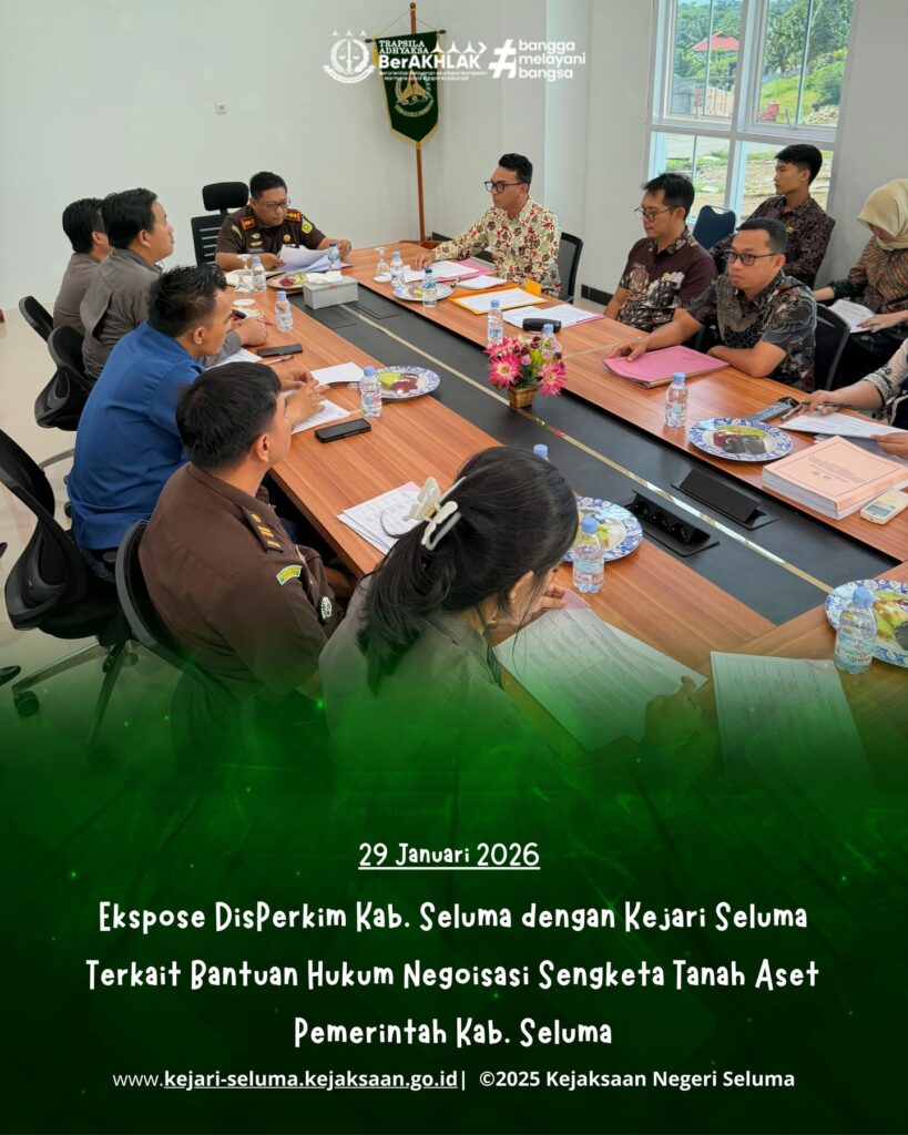 Dalam pertemuan ini, Kejaksaan Negeri Seluma menelaah duduk perkara guna memberikan pertimbangan hukum yang tepat serta memfasilitasi proses negosiasi. Langkah ini merupakan bentuk komitmen Kejari Seluma dalam mendukung Pemerintah Daerah untuk mengamankan aset negara agar dapat dimanfaatkan sepenuhnya bagi kepentingan masyarakat.
